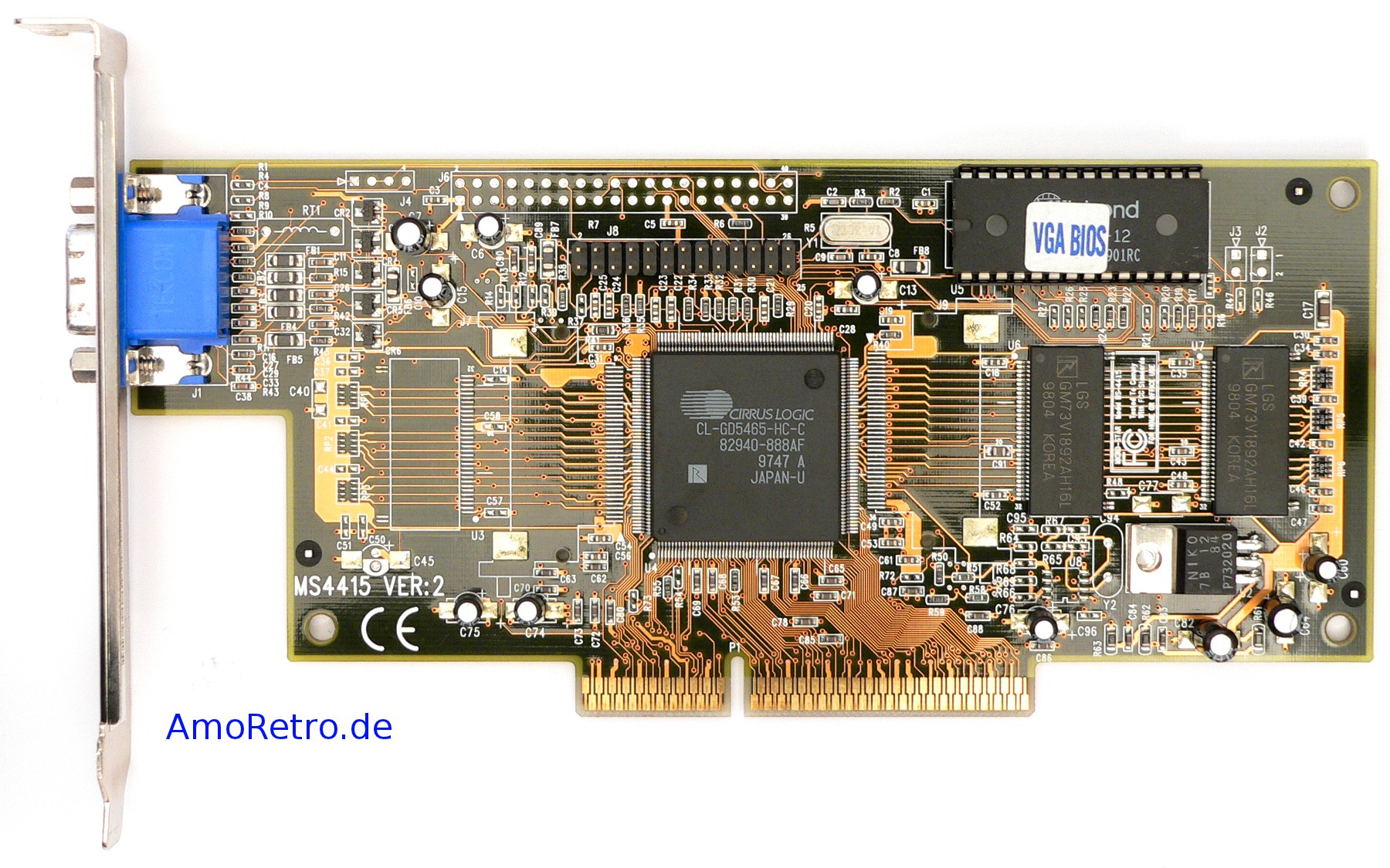 The CL-GD5426 was the first Cirrus Logic chipset that got a 32-bit hardware BitBLT (bit block transfer) engine and also the first to support up to 2 MB of video memory. 15-pin D-SUB only.