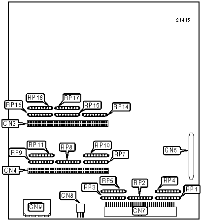 Note: CN8, the JST connector, can be connected to a DE-9 serial connector using a supplied cable that performs signal conversion. This cable allows the Windjammer to be connected to a VT100/VT220 terminal or terminal emulator. Note: CN6 or CN7 connects the Ultra-Windjammer controller to the host system. CN6 allows the Windjammer to interface to host systems with differential SCSI ports via an optional differential converter board. Note: CN3, CN4, and CN7 (68-pin connectors) can also be connected to 50-pin narrow SCSI via optional converters. | |||