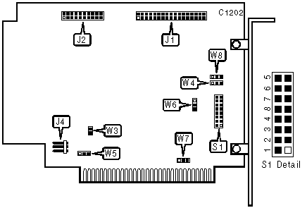 Note: This controller has a built-in low-level format program. To enter the program, run the DEBUG utility supplied with DOS and at the prompt enter: G=C800:5. Two additional jumpers may be present, W1 & W2, and are reserved for factory use and may not be changed.