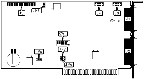 Floppy interface, parallel port, serial ports (2), game port, clock