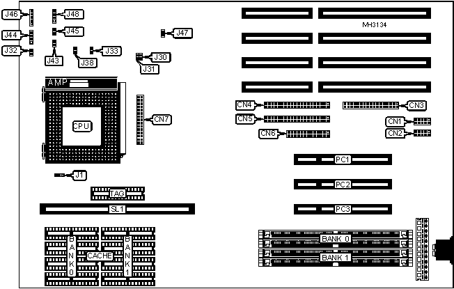 32-bit PCI slots (3), floppy drive interface, IDE interfaces (2), parallel port, serial ports (2), VRM connector, cache slot |