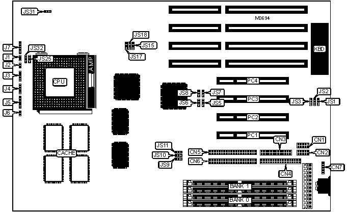 Note: Board accepts EDO memory. Board also accepts x 32 SIMMs.