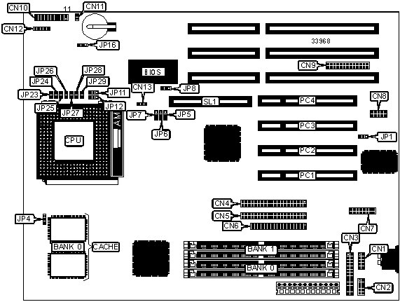 Note: Board accepts EDO memory. Banks are interchangeable.