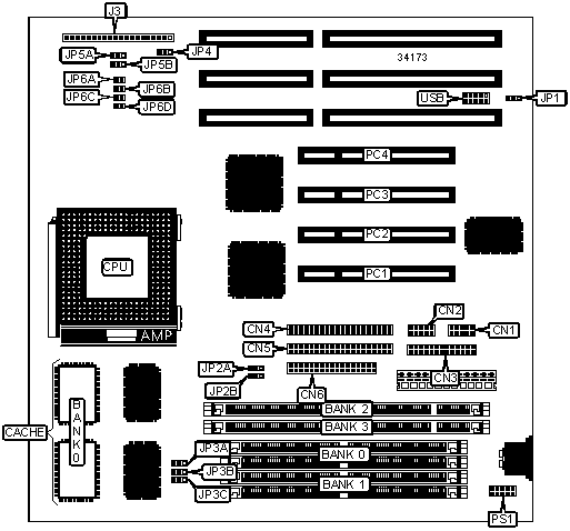32-bit PCI slots (4), floppy drive interface, IDE interfaces (2), parallel port, PS/2 mouse interface, serial ports (2), USB connector