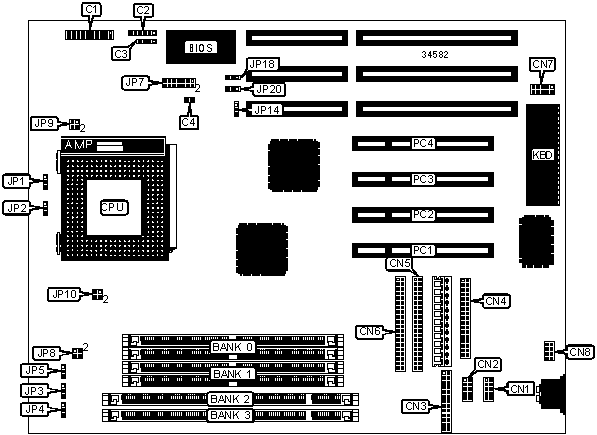 Note: Pins designated should be in the closed position. If board is AP5T-1, ignore JP5.