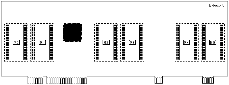 Note: The system memory card uses proprietary memory modules, some require only one module space on the memory board, while others require two. In the cases where a double size module is used, the following space is marked with "-----------------", designating that space as occupied.