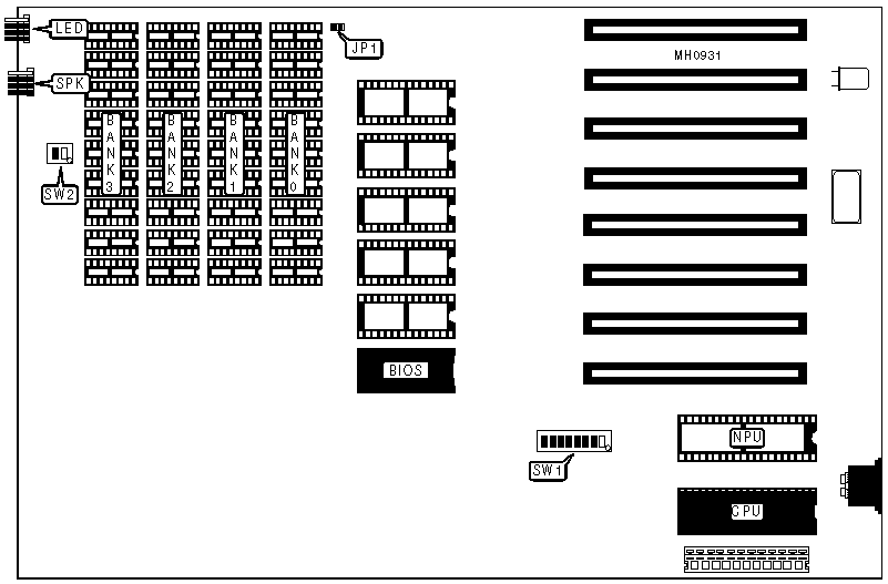 Note:System memory is factory configured at 640KB and should not be removed. Setting JP1 open forces the system to only recognize 256KB. |