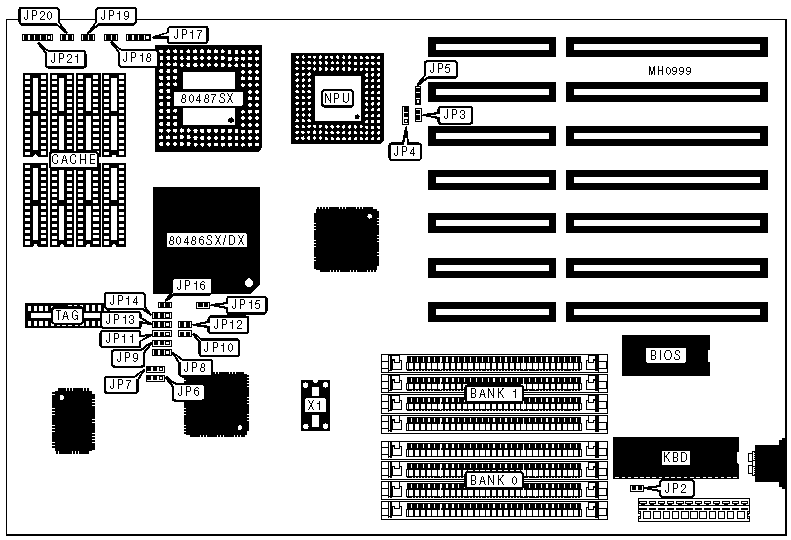 Note:The oscillator installed at X1 must match the speed of the CPU installed. (iOSC/1) | |||