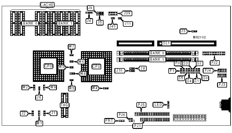 Note: This board accepts 4M x 36 SIMMS, but jumper settings are not identified by the manufacturer. | ||