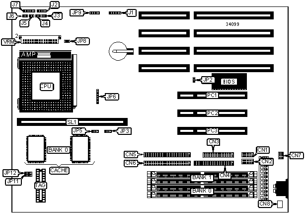 Note: Board accepts EDO memory. Board also accepts x 32 SIMMs. Banks are interchangeable.