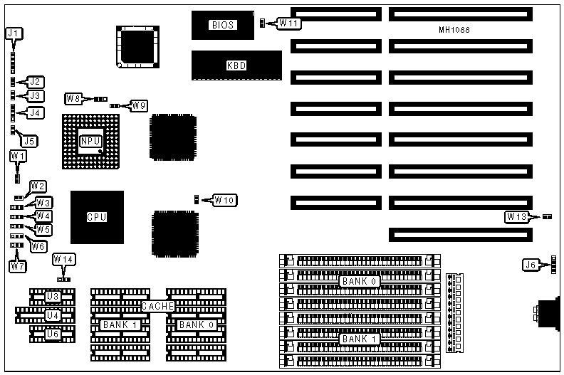 Note:To cache main memory above 16MB, insert 1 16K x 4 into socket U3. For write-back cache mode, insert 1 16K x 4 SRAM into socket U6.