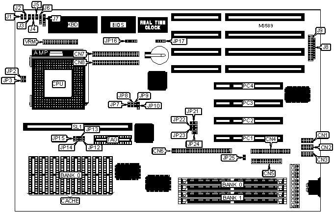 32-bit PCI slots (4), floppy drive interface, IDE interfaces (2), SCSI connector, parallel port, serial ports (2), cache slot, VRM connector