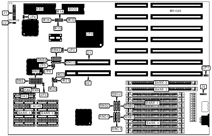 Note:W13 - W16 need only be configured if a 20-pin clock generator is installed in U29.