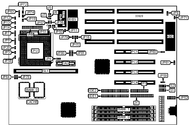 Note: Board accepts EDO memory. Banks are interchangeable. | ||