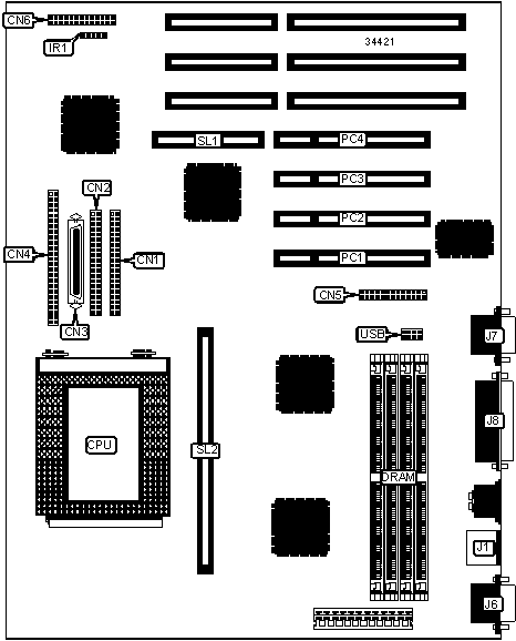 Note: Board accepts EDO memory. The location of the banks is unidentified.