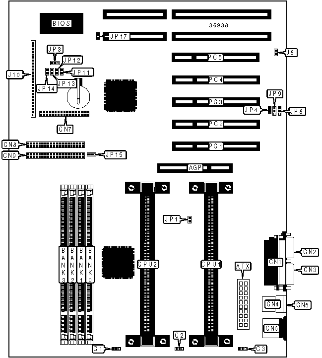 Note: 256KB/512KB cache is located on the Pentium II CPU. 128KB cache is located on the Celeron 300A & 333 CPU. |