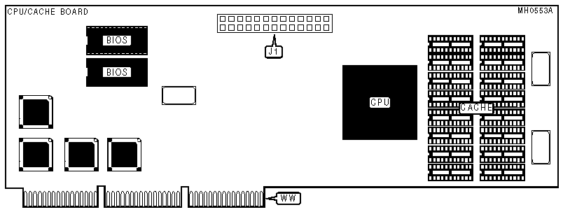 Proprietary external CPU/cache card connector, proprietary external keyboard/mouse connector, proprietary external memory card connectors (2), proprietary external local bus connector |