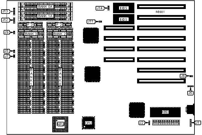 Note: In addition to the above configurations, banks 2 & 3 also will accept 41256 chips and banks 0A & 1A will accept 256K x 9. If banks 2 & 3 are used, P2 & P3 must be installed with 41256 chips (see DRAM PARITY CONFIGURATION table).