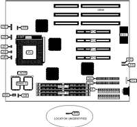 Floppy drive interface, green PC connector, IDE interfaces (2), parallel port, PS/2 mouse port, serial ports (2), VGA feature connector, VGA port, riser slot, cache slot, MIDI/joystick interface