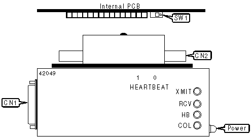 AUI transceiver via DB-15 port RG-58A/U 50 ohm coaxial |