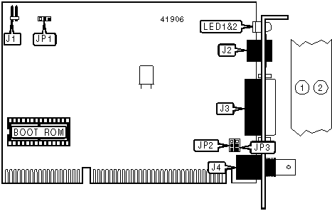 Unshielded twisted pair AUI transceiver via DB-15 port RG-58A/U 50ohm coaxial |