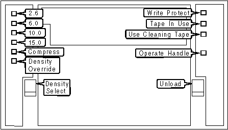 Note: All four right side or all seven left side indicators ‘On’ designates that the Power-on self-test (POST) is starting. All four right side or all seven left side indicators ‘Blinking’ designates that an error has occurred in the POST; clear the error by pressing the unload button, or turn drive power off and then on again. If error remains service is required. | |||