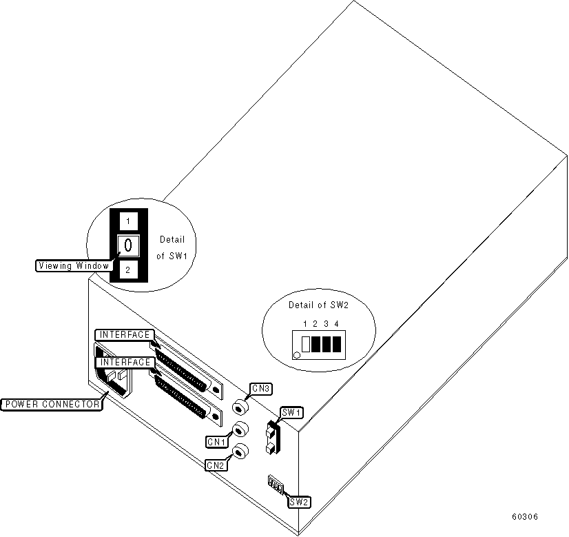 Note: SCSI ID is selected by activating SW1 until the desired number is displayed in the viewing window.