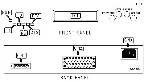 AC power, V.35 data port, T1 network interface via 15-pin connector