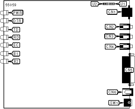 ISDN interface via RJ-45 connector, headphone, microphone, speaker, 25-pin serial port, power |