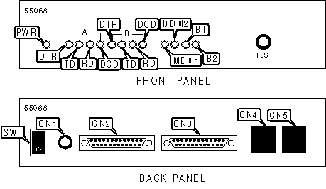Power, ISDN interface via RJ-45 connector (2), 25-pin serial port (2)