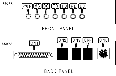 Power connector, 25-pin serial port, RJ-11 telephone ports (2),