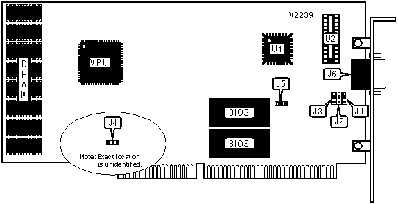 Note: This card may take 256KB, 512KB, or 1MB of on-board DRAM. The locations of the banks and the configurations of the chips in these banks is unidentified.