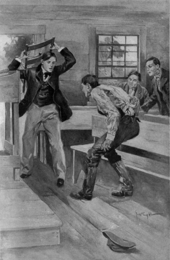 Then Gordon fell into an error of more noted generals. Seizing a supply of missiles, he charged straight up the hill. Though the group had broken at the sudden assault, by the time he reached the hill-top they had rallied, and while he was out of ammunition they made a charge on him. Wheeling, he went down the hill like the wind, while his pursuers broke after him with shouts of triumph. As he reached the stone-pile he turned and made a stand, which brought them to a momentary stop. Just then a shout arose below him. Gordon turned to see rushing up the hill toward him Norman Wentworth. He was picking up stones as he ran. Gordon heard him call out something, but he did not wait for his words. Here was his arch-enemy, his conqueror, and here, at least, he was his equal. Without wasting further time with those above him, Gordon sprang toward his new assailant, and steadying himself, hurled his heaviest stone. Fortunately, Norman Wentworth had been reared in the country and knew how to dodge as well as to throw a stone, or his days might have ended then and there.