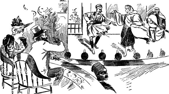 "Cigars, gentlemen, best Havanas. Here, old man, is the rest uv yer change. The chappie back there wanted to kick, but he couldn't stand me look. I don't 'low no working uv me customers dat way. You see I wur next to him in a minute."