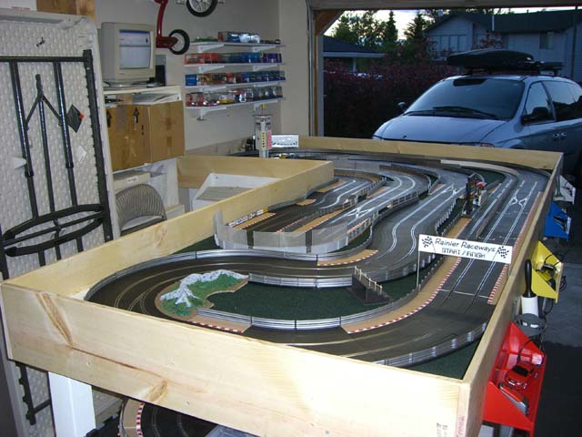 My track is a constant work in progress. The table itself is as done as it will be until I find more room to make it bigger, but the layout might change over time. Here are some of my favorite pics, but check out my gallery page for more images.