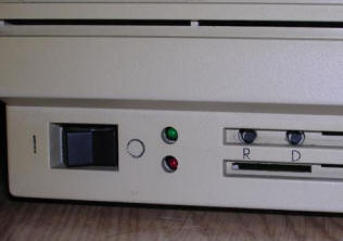 | Diagnostics: The machine starts as most PCs, preforming power-on self test called PUP (Power-Up Prufung?). This test is performed before display is initialized. After the most important tests, red LED in front panel is turned off. In front panel, there is a row of 8 diagnostic LEDs on the right of Power/Disk LEDs, below Reset/Debug buttons. You can see it in the photo as a long slot under "R D" markings. These LEDs light up in combinations when particular test ends. Service manual gives the following errors: