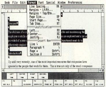 As is true with other programs using GDOS, the output is sllloooow. Even when you don't need to use fancy fonts, there is no way to get quick draft output (perhaps just using the printer's built-in font) except by printing in ASCII format, which loses so much of the document's formatting information that page breaks may not be in the right place. It would be nice to get a good quality printout that didn't include changing typefaces, etc., when that was necessary.