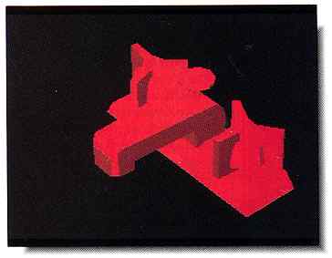 On a color monitor, Set Color lets you change the color of an object. If you have chosen 7 shades, you can choose among Red, Green, Blue, Yellow, Violet, Cyan or White for either of two different object colors. If you choose 14 shades, CAD-3D will have more shades to assign to an object's faces, but only one color of object can be in memory.