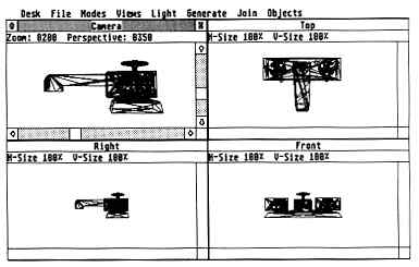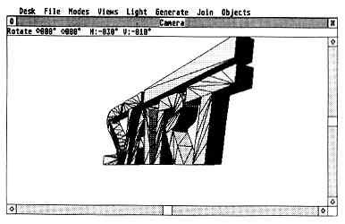 CAD-3D 1.0 uses drop-down menus for its functions and dialog and alert boxes for further input or information. These menus are the heart of CAD-3D 1.0. From the left, they are the Desk, File, Modes, Views, Light, Generate, Join and Objects menus. We'll go through each of them; as we do, you'll get a good idea not only of how to use CAD-3D 1.0, hut also how they interact.
