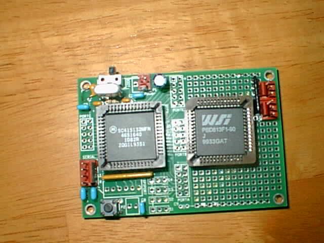 I've added a Waferscale psd813f1 device to my brand-new BOTBoard+, and the combination is dynamite!  My system now contains exactly two chips, the 68hc11e1 and the psd813f1; no glue chips whatsoever.  This tiny system sports 128KB of flash memory, 32KB of EEPROM, 2.5KB of static RAM, about 40 I/O lines of various types, and a wad of programmable logic that I can use to build shift registers, keypad scanners, and other cool subsystems.