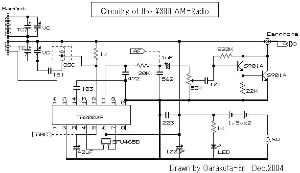 ところが、ひょんな事から電池管→簡素型ラジオ→100円ラジオ→300円AMラジオ→回路図書き起しと、連鎖反応が起きてしまいました。・・・で、目下そのAM放送を聴きながらこれを書いてます。