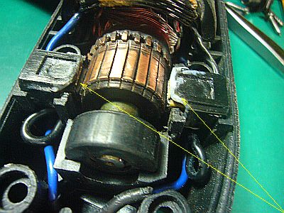 Also, "carbon brush" said "cannot be used anymore" because the "Pushing spring" at the rear is too compressed.