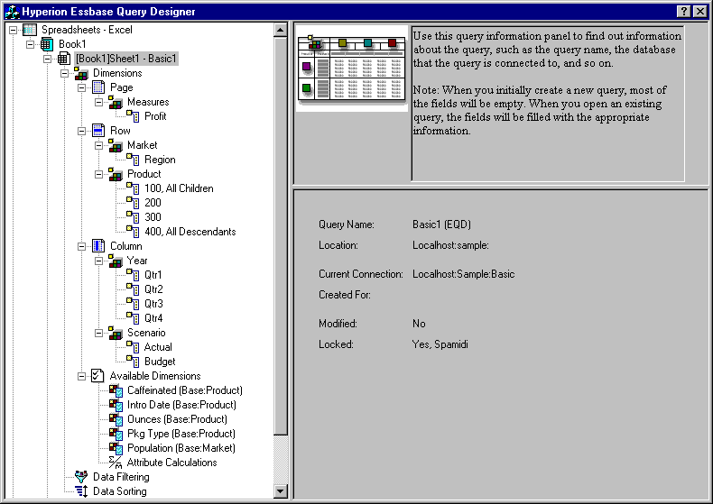 Figure 64. Hyperion Essbase Query Designer Displaying Query Information Panel